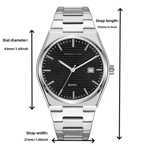 Aerodyne by Swadesi Stuff is a modern, hi-tech & luxurious timepiece. The premium watch is made using Titanium metal. The same metal that is used for making aircraft turbines, military aircrafts & space shuttles. The use of titanium metal makes this watch lighter in weight as compared to other steel watches but has the same sturdiness. The luxurious design paired with modern engineering makes the Aerodyne the perfect multi-occasion watch. Elegant on the wrist but bold enough to liaise the Swadesi sentiments.