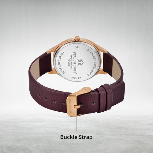 The timepiece is held by a pair of premium leather straps that are durable & super comfortable on the wrist
