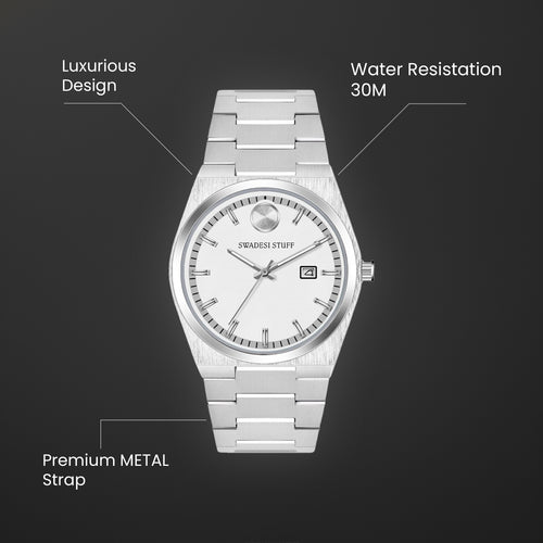 Aerodyne by Swadesi Stuff is a modern, hi-tech & luxurious timepiece. The premium watch is made using Titanium metal. The same metal that is used for making aircraft turbines, military aircrafts & space shuttles. The use of titanium metal makes this watch lighter in weight as compared to other steel watches but has the same sturdiness. The luxurious design paired with modern engineering makes the Aerodyne the perfect multi-occasion watch. Elegant on the wrist but bold enough to liaise the Swadesi sentiments.