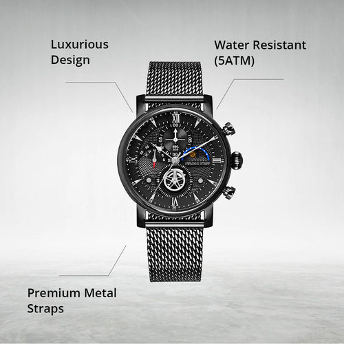 The timepiece is held by a pair of premium metal straps that are durable & super comfortable on the wrist
