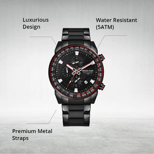 The timepiece is held by a pair of premium metal straps that are durable & super comfortable on the wrist