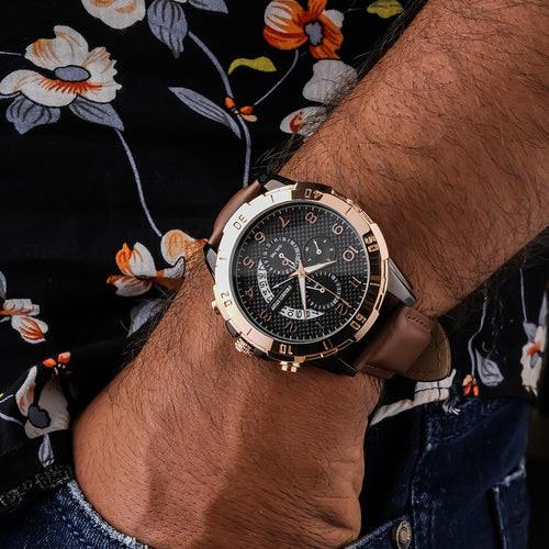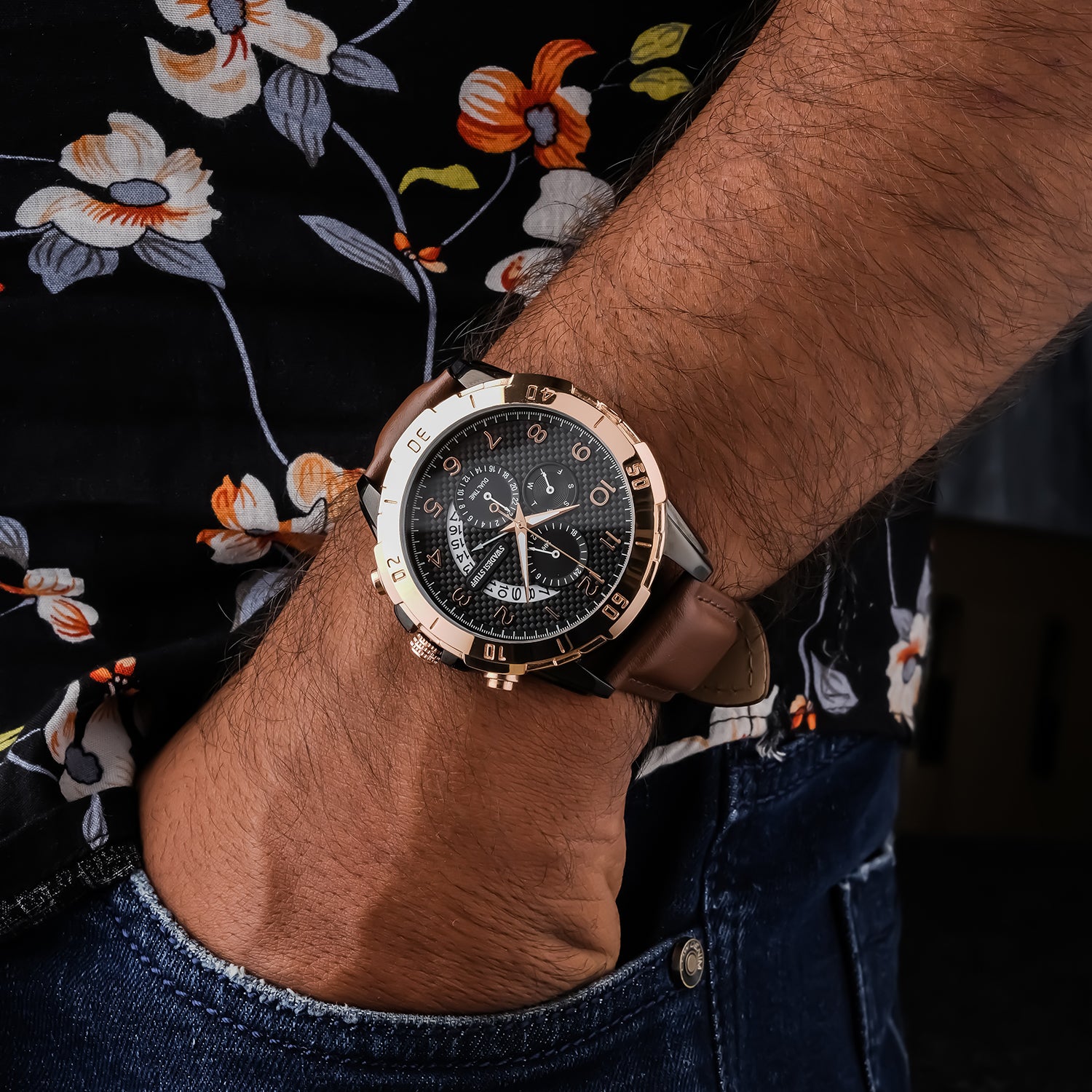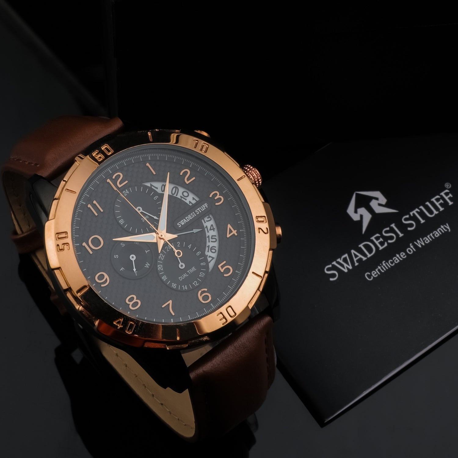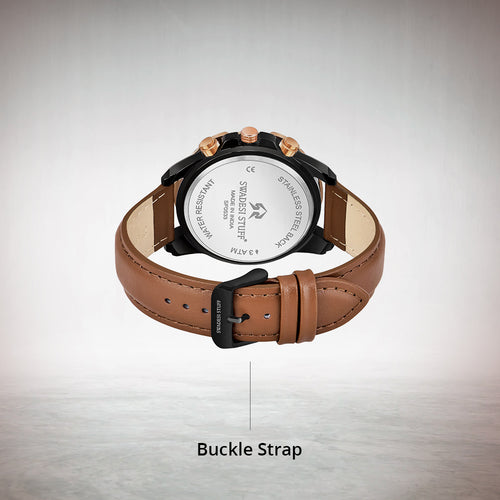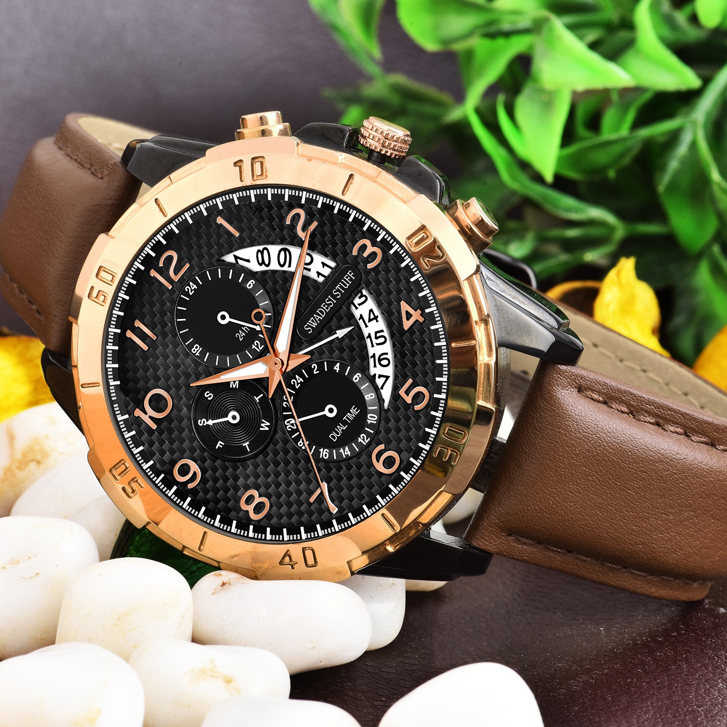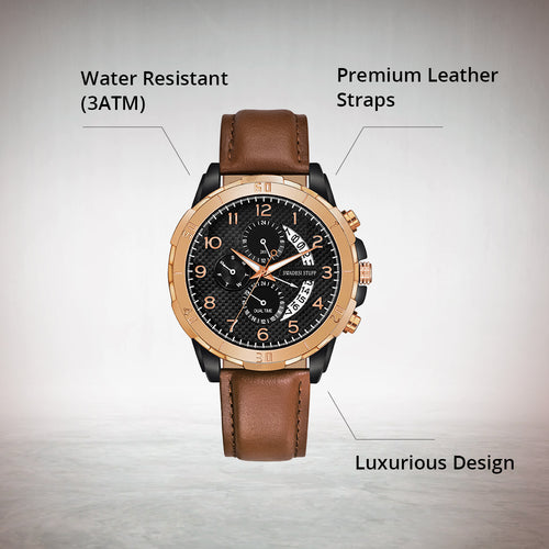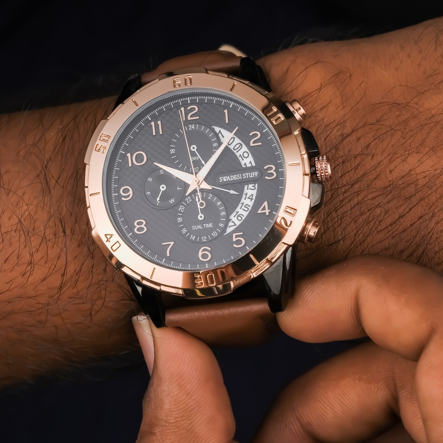 The timepiece is held by a pair of premium leather straps that are durable & super comfortable on the wrist
