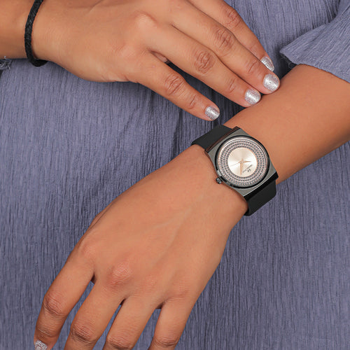 Studded with handmade diamonds around a powerful piece of Japanese machinery, The Crystalline Charm is proudly conceptualized, designed & crafted by some of the finest craftsmen in the country. Held by a pair of lavish leather straps, the master timepiece signifies the unique blend of grace & elegance. Elegant on the wrist but bold enough to liaise the Swadesi sentiments.