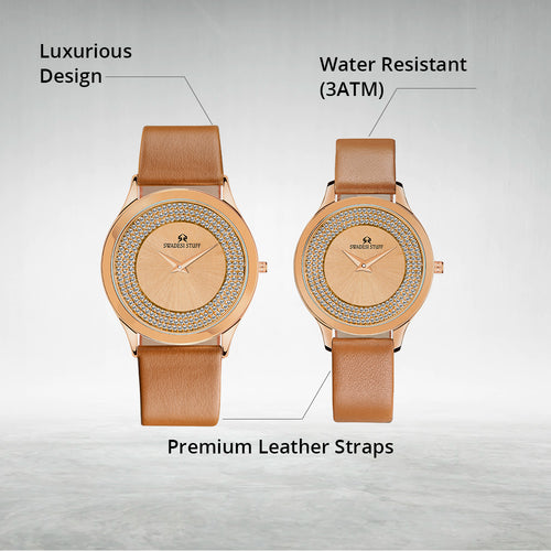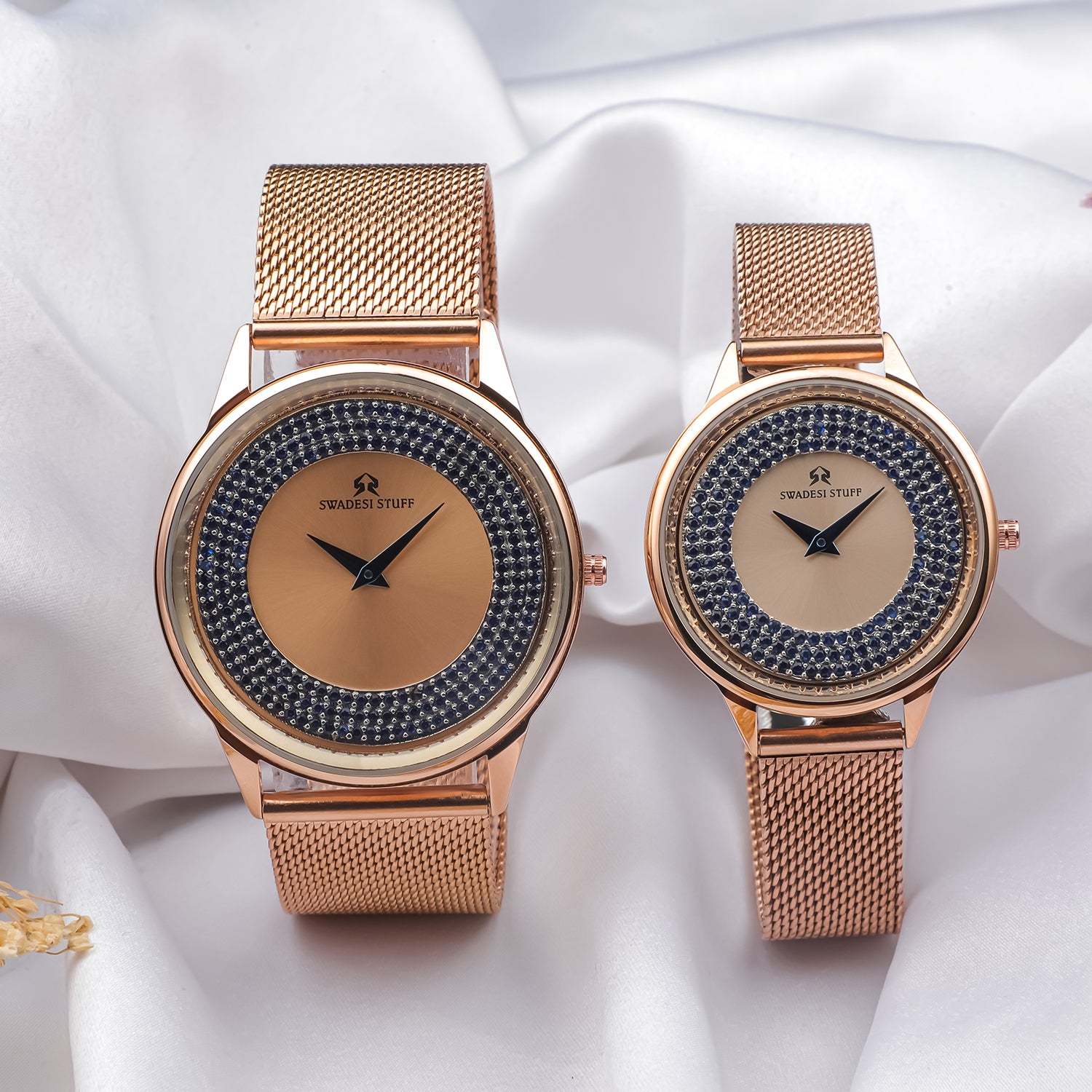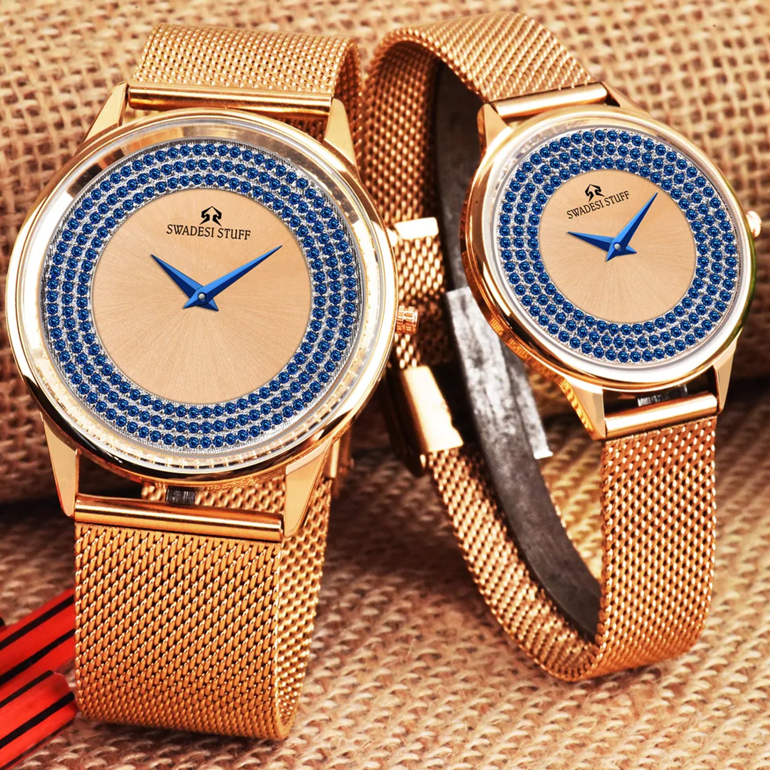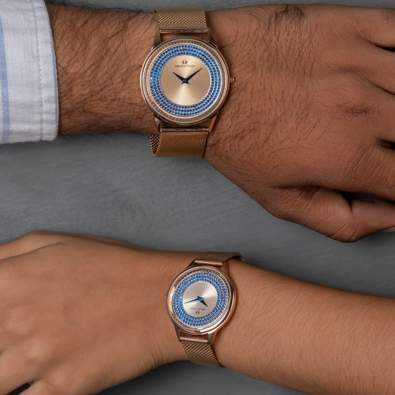 Eternity by Swadesi Stuff is an exquisite couple’s watch with hand-studded diamonds crafted & designed proudly in India. The name eternity signifies the never-ending love, care, and affection between couples. The master timepieces are held by premium stainless steel straps & are powered by a significant piece of Japanese Quartz movement technology. The luxurious timepiece has an elegant design bold enough to liaise the Swadesi sentiments.