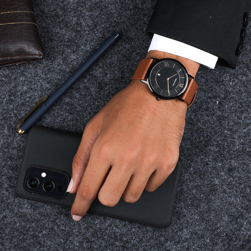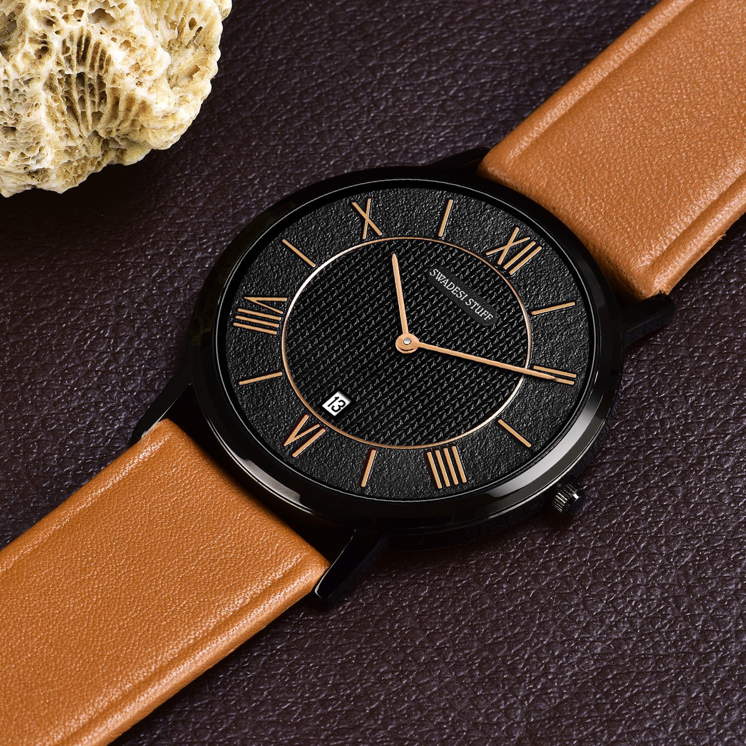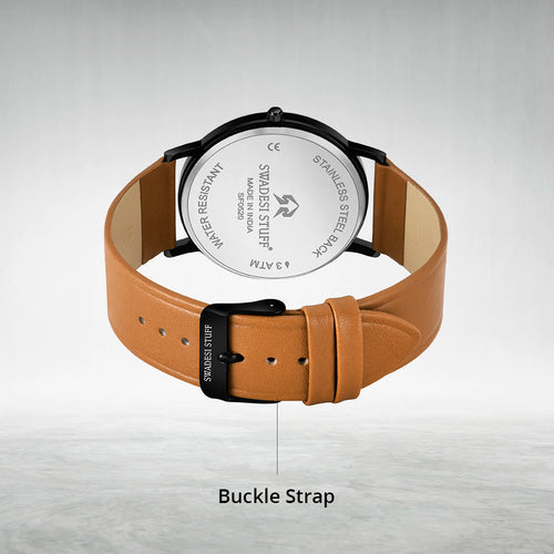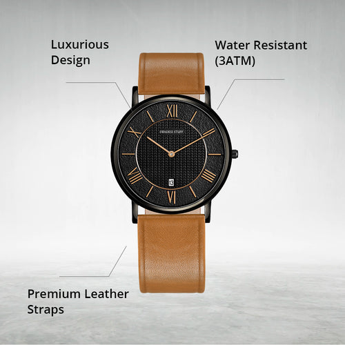 The timepiece is held by a pair of premium leather straps that are durable & super comfortable on the wrist