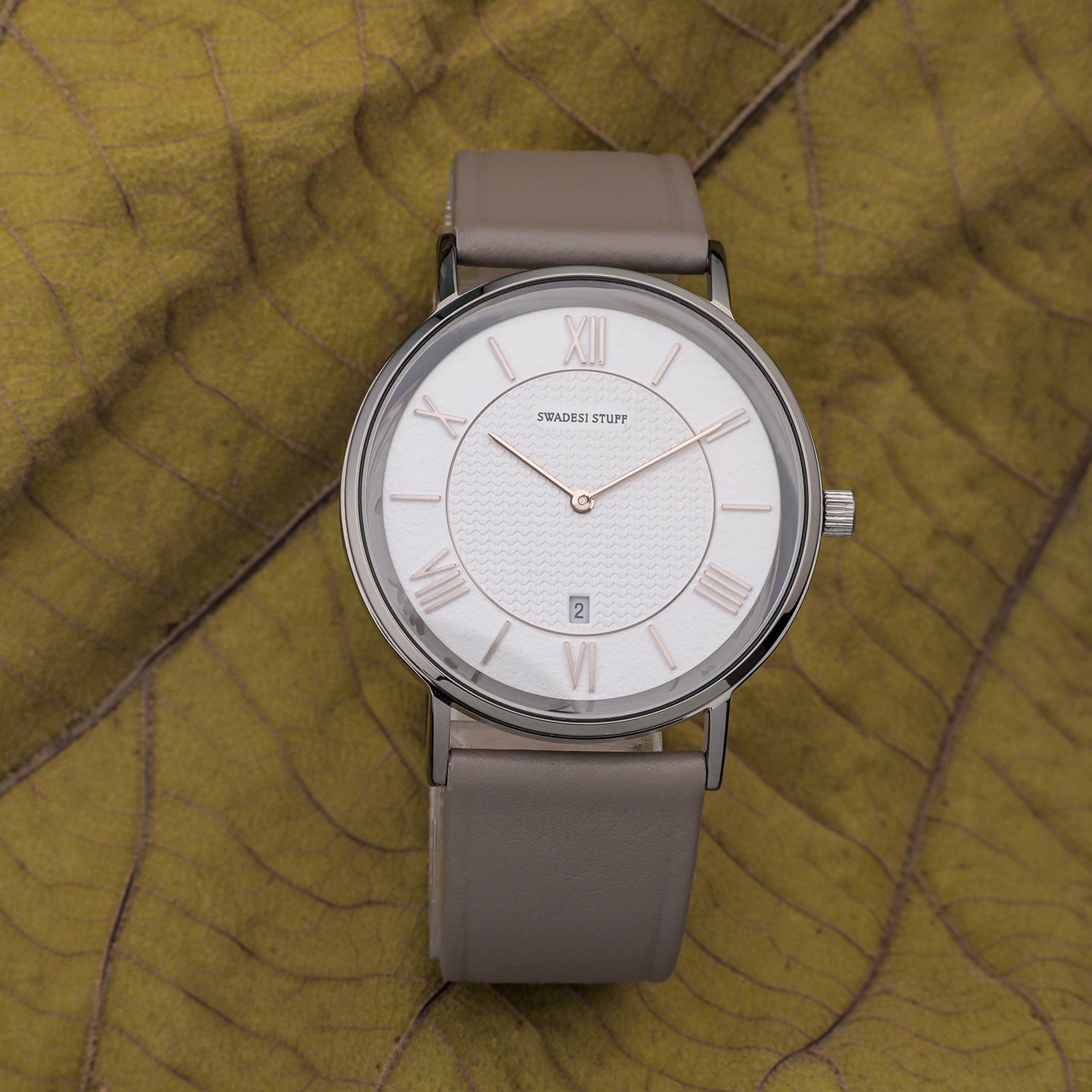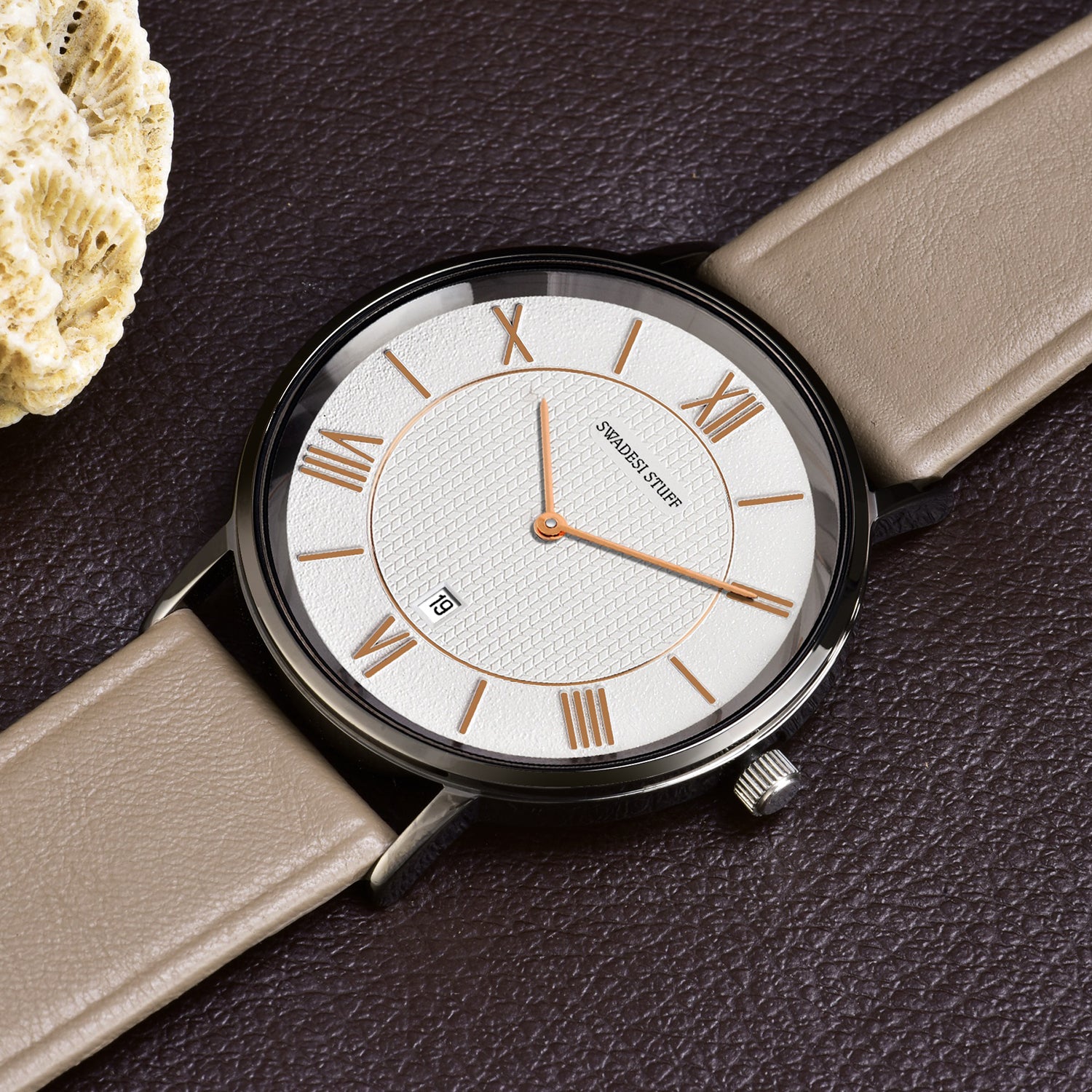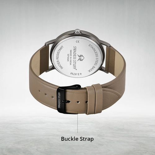 The timepiece is held by a pair of premium leather straps that are durable & super comfortable on the wrist