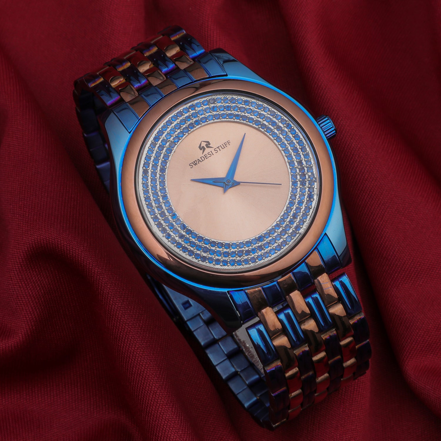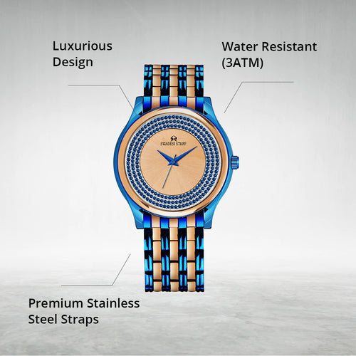 The Imperia Supreme represents the rich Indian heritage through it’s bold & elegant colour combination of Blue & Rose Gold. Blue symbolizes lavishness whereas Rose Gold symbolizes elegance. Proudly handcrafted in India around a piece of significant Japanese machinery & a dial hand-studded with premium diamonds, the Imperia Supreme adds a luxurious touch to your life. Elegant on the wrist but bold enough to liaise the Swadesi sentiments