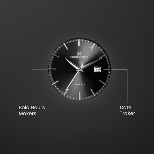 Aerodyne by Swadesi Stuff is a modern, hi-tech & luxurious timepiece. The premium watch is made using Titanium metal. The same metal that is used for making aircraft turbines, military aircrafts & space shuttles. The use of titanium metal makes this watch lighter in weight as compared to other steel watches but has the same sturdiness. The luxurious design paired with modern engineering makes the Aerodyne the perfect multi-occasion watch. Elegant on the wrist but bold enough to liaise the Swadesi sentiments.