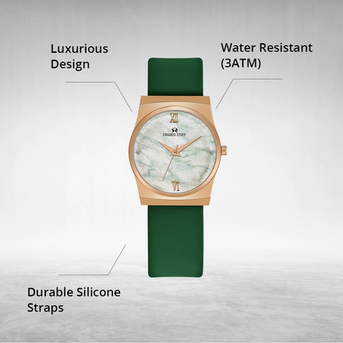The timepiece is held by a pair of premium silicone straps that are durable & super comfortable on the wrist