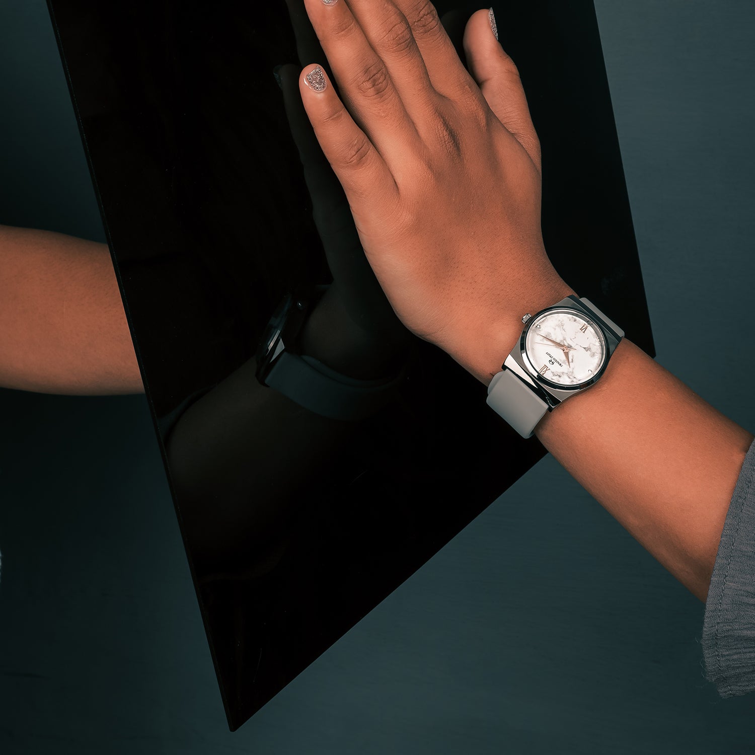 Designed, conceptualized & crafted proudly in India, the Luna is inspired by the calming sight of the Moon. Held by a pair of lavish silicon bands, it is built around an astonishing piece of indigenous movement technology. This multi-occasion timepiece gracefully adds a tint of luxury to your wrist.
