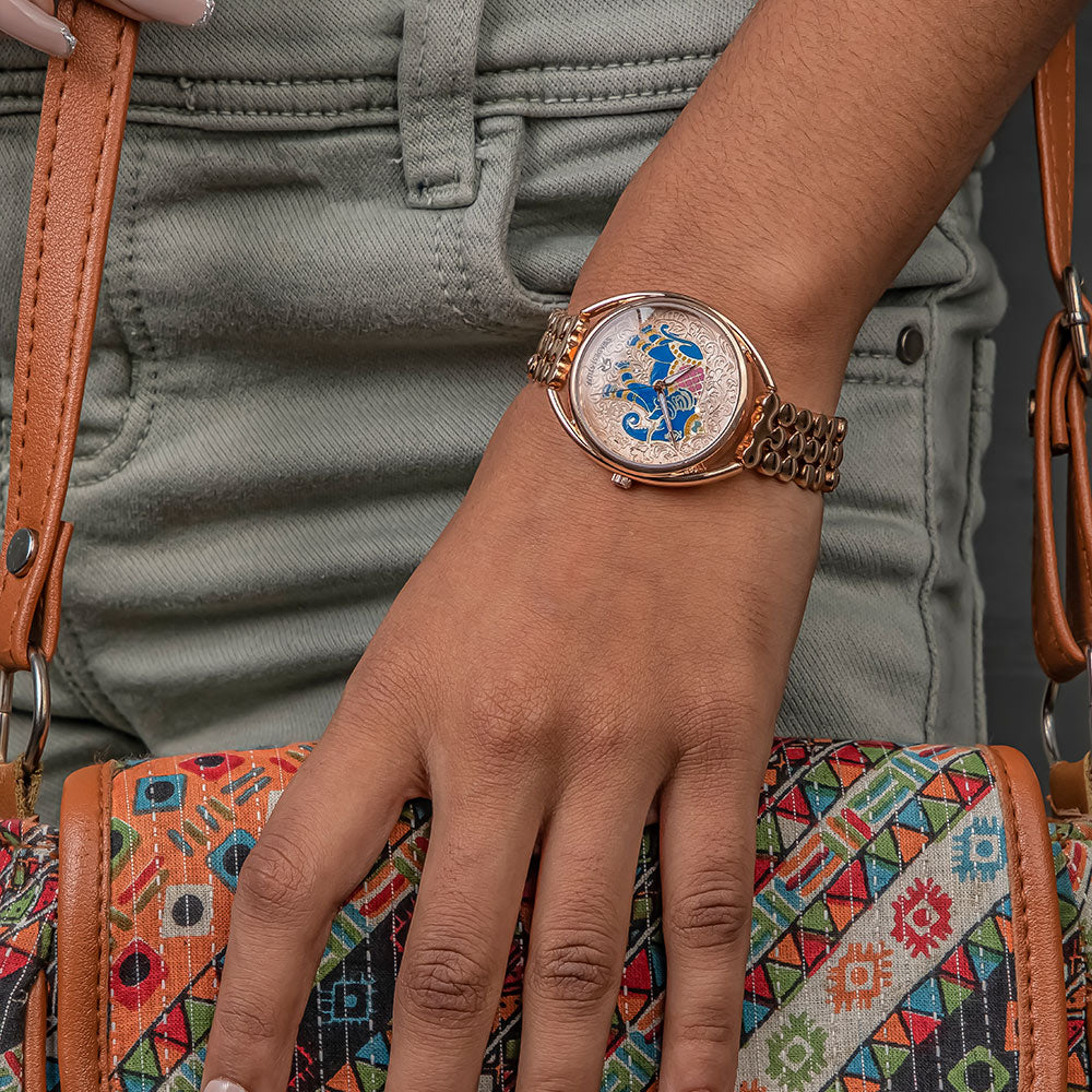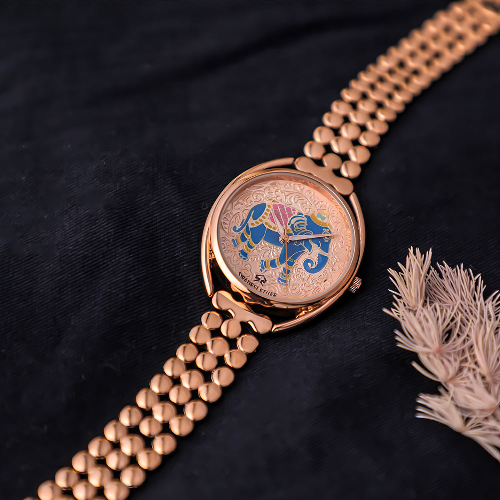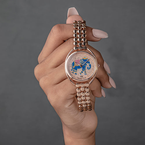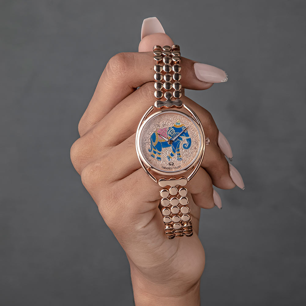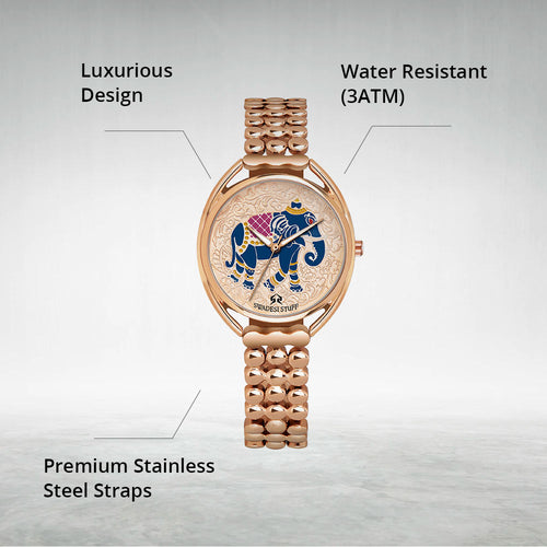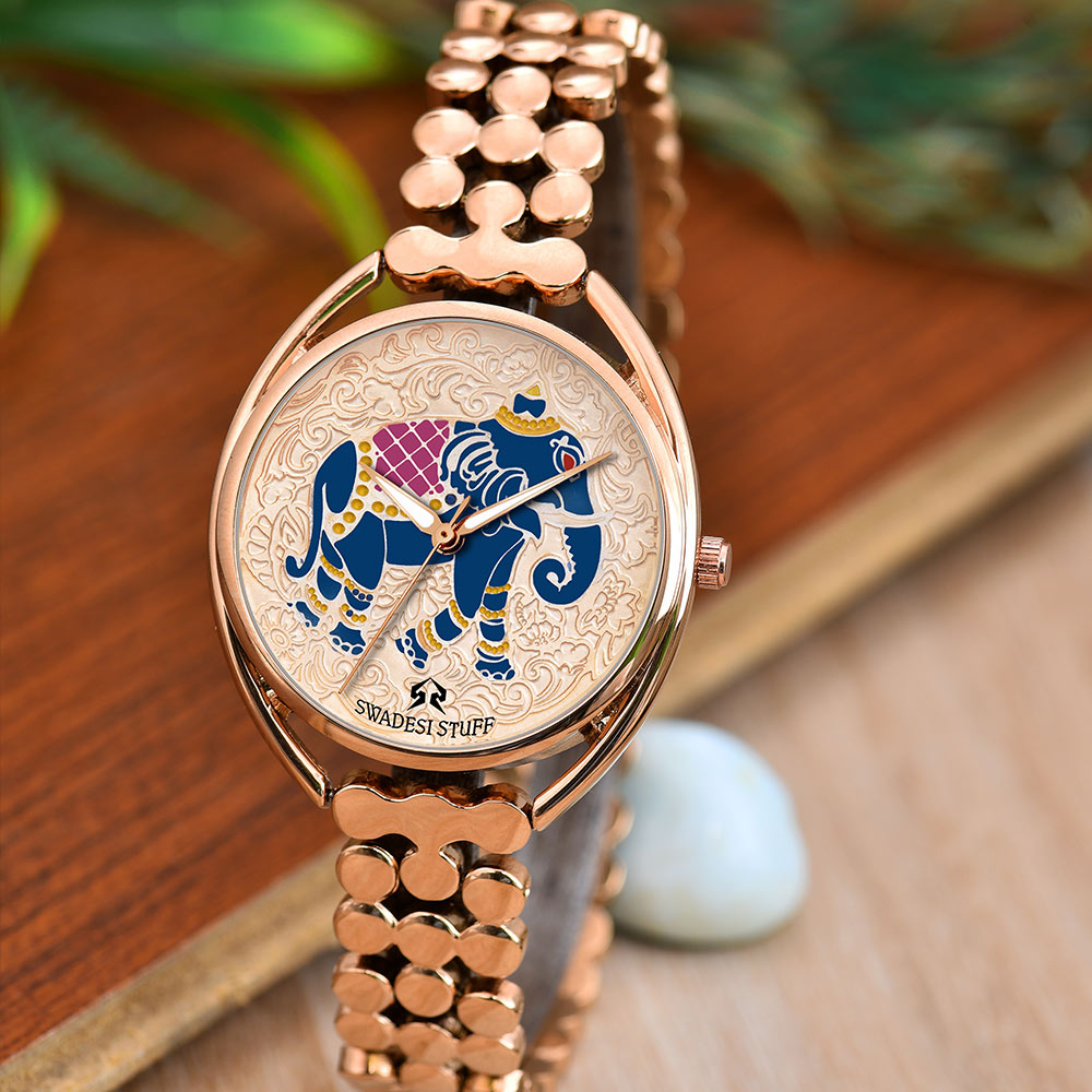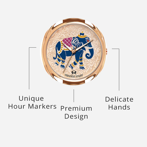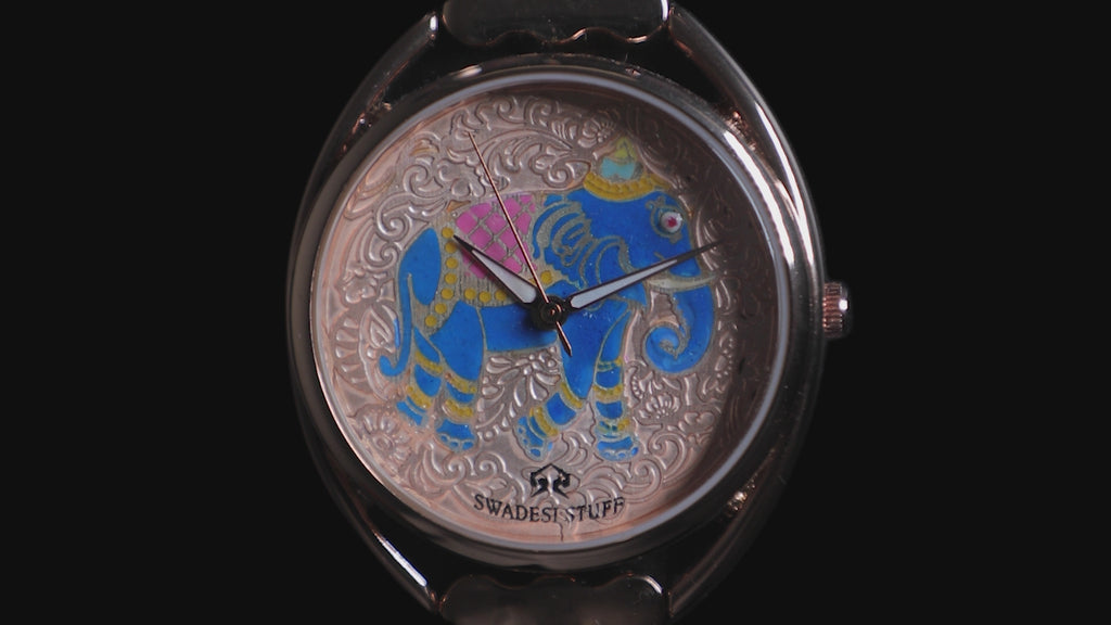 Mammoth by Swadesi Stuff is a luxurious timepiece designed & crafted proudly in India. The dial flaunts a splendid design of an elephant resembling royalty & luxury The watch is powered by a splendid piece of Japanese movement machinery & is held by a pair of premium & unique stainless steel straps. The elegant design of the Mammoth is bold enough to liaise the Swadesi Sentiments.