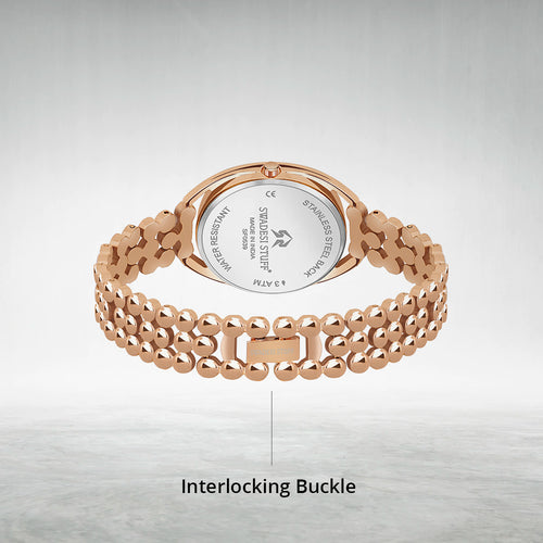 The timepiece is held by a pair of premium stainless-steel straps hand-studded with diamonds that are durable & super comfortable on the wrist