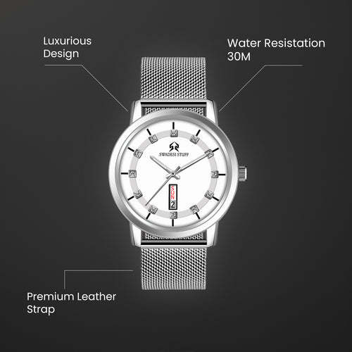 The timepiece is held by a pair of premium metal straps that are durable & super comfortable on the wrist