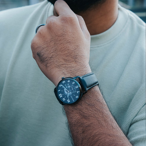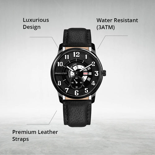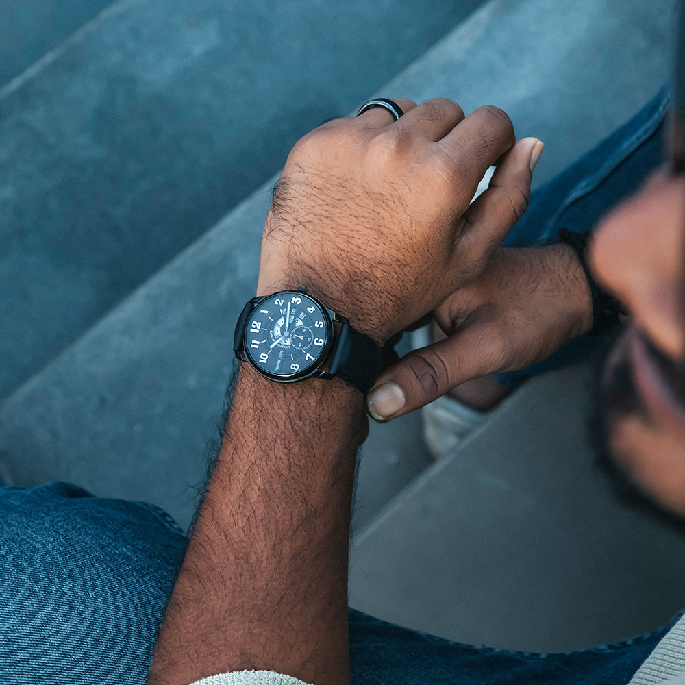 The timepiece is held by a pair of premium leather straps that are durable & super comfortable on the wrist