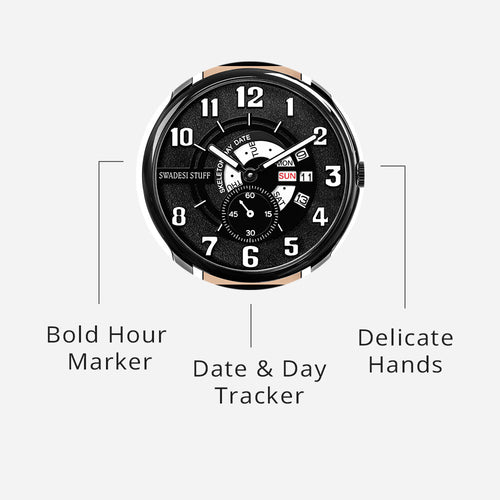 Conceptualized, designed & crafted proudly in India, the Relics is a master creation by the finest craftsman of the country. The dial provides you with minute details through its unique & never seen before design. The watch is powered by a significant piece of Japanese movement machinery & is held by a pair of premium leather straps. The eye-catching design of the watch feels elegant on the wrist & is bold enough to liaise the Swadesi Sentiments.