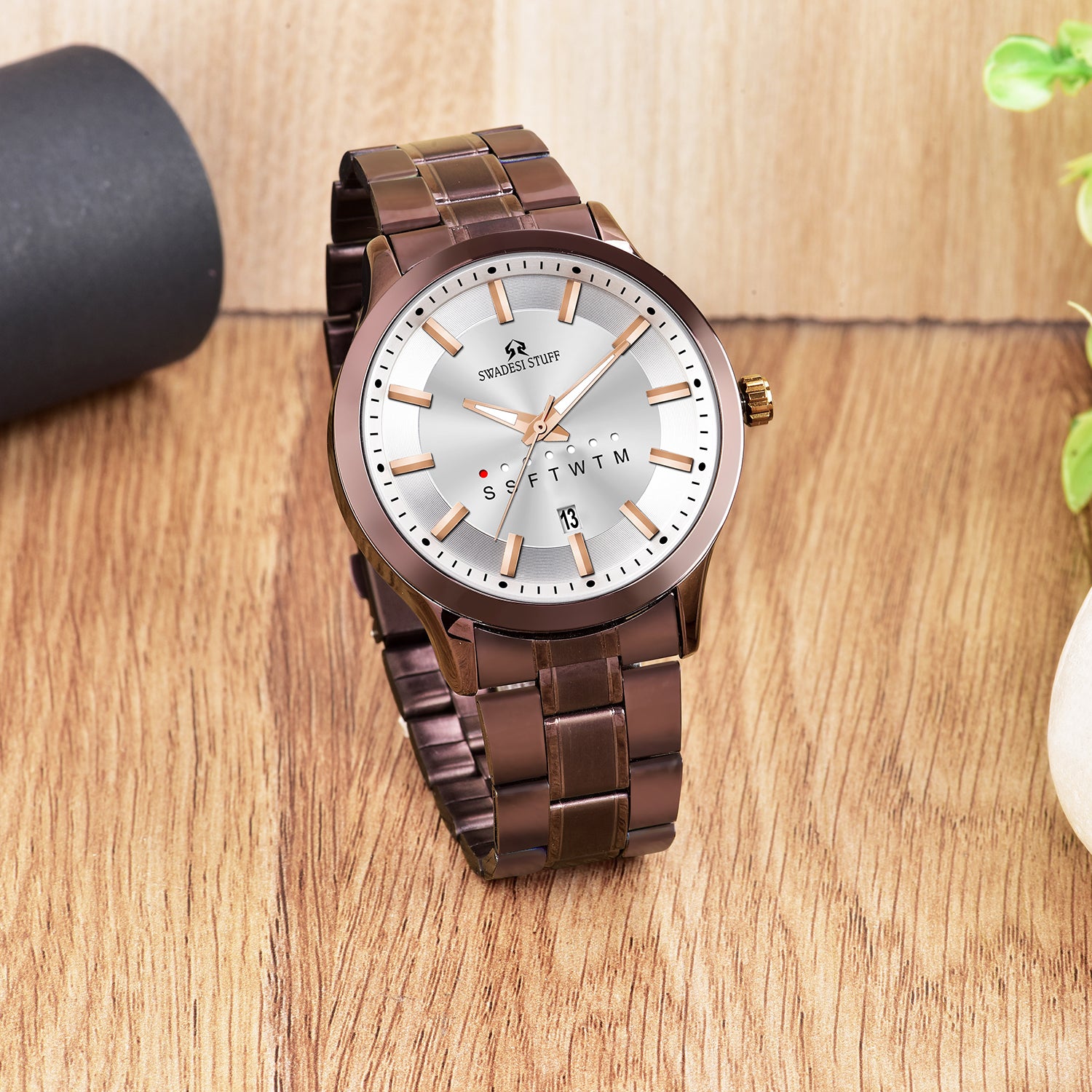 The timepiece is held by a pair of premium leather straps that are durable & super comfortable on the wrist