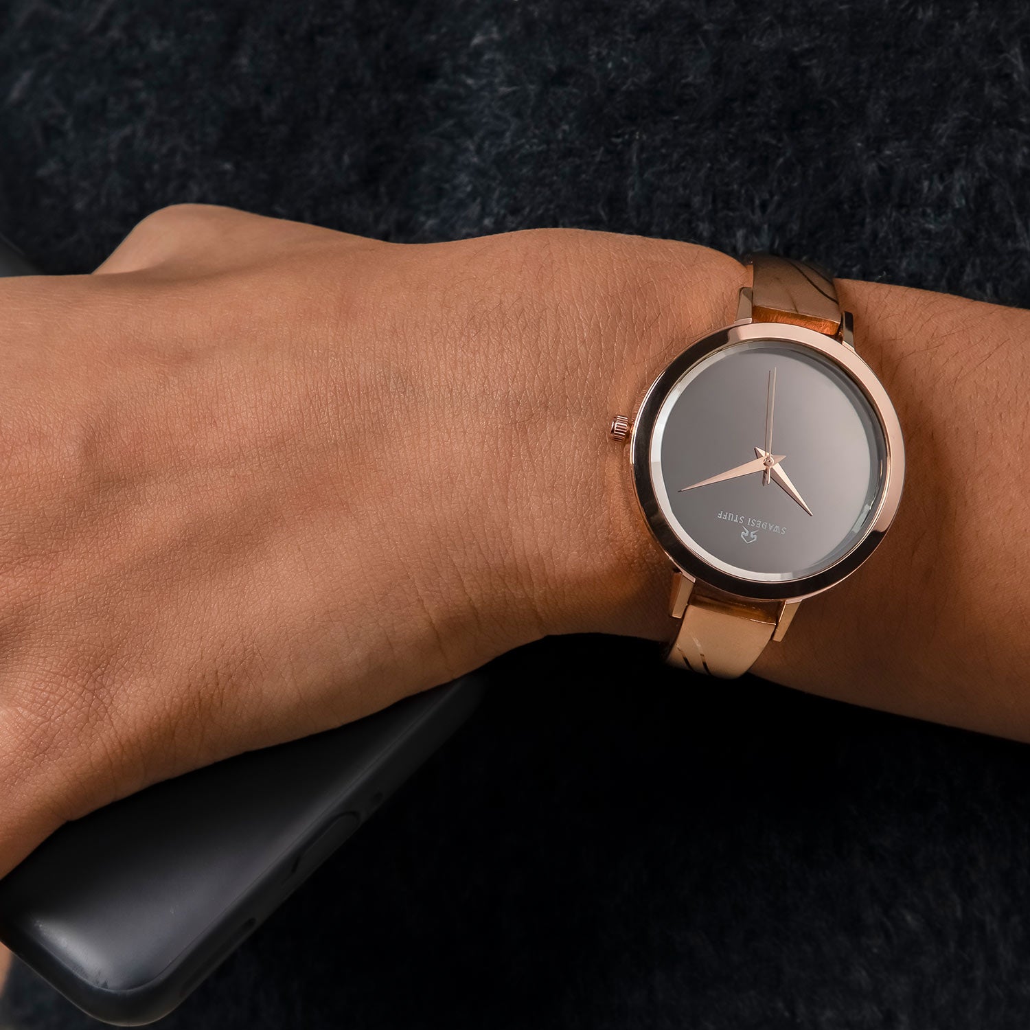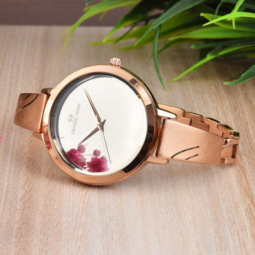 The timepiece is held by a pair of premium stainless-steel straps hand-studded with diamonds that are durable & super comfortable on the wrist
