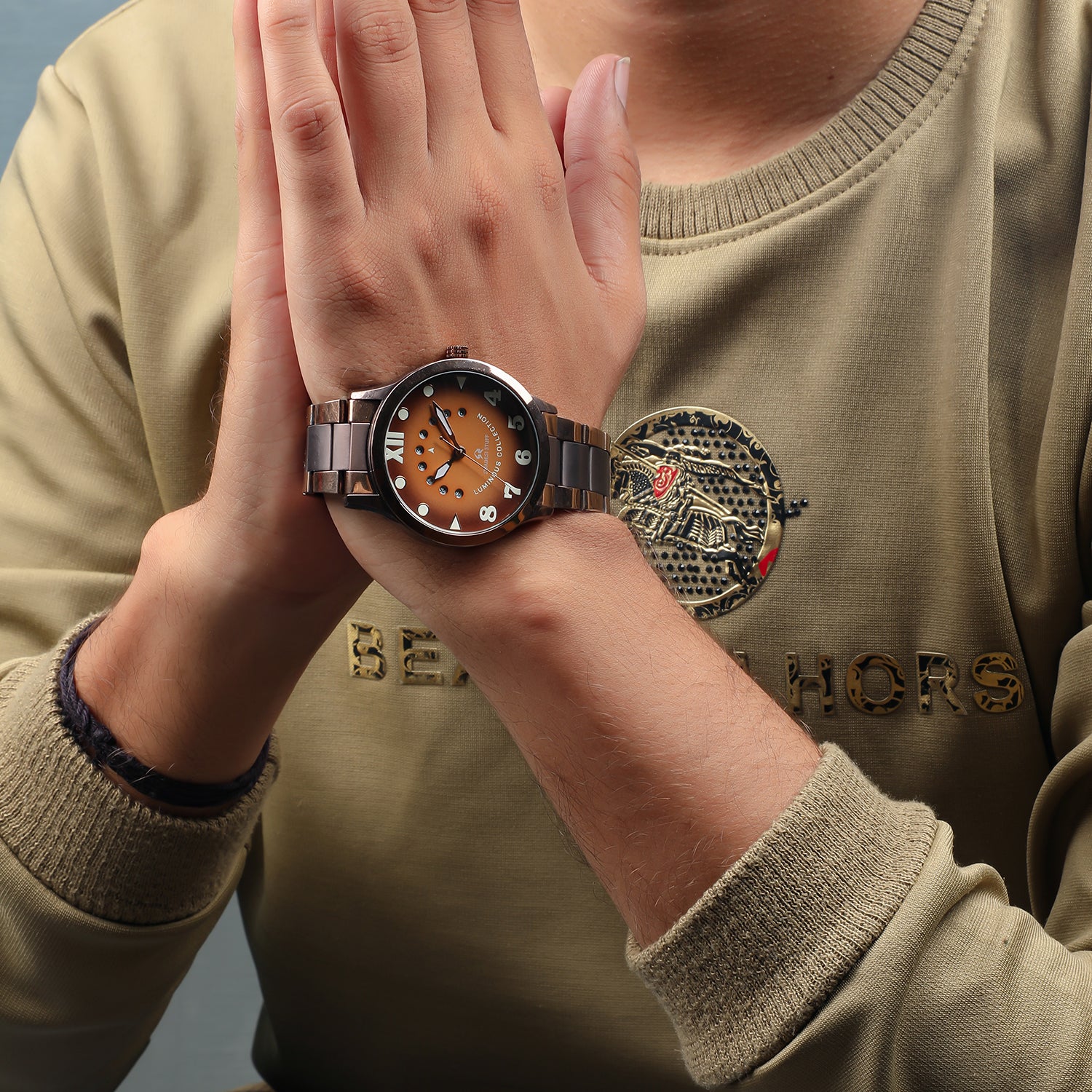 The timepiece is held by a pair of premium stainless steel straps that are durable & super comfortable on the wrist