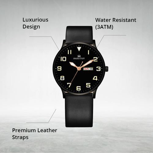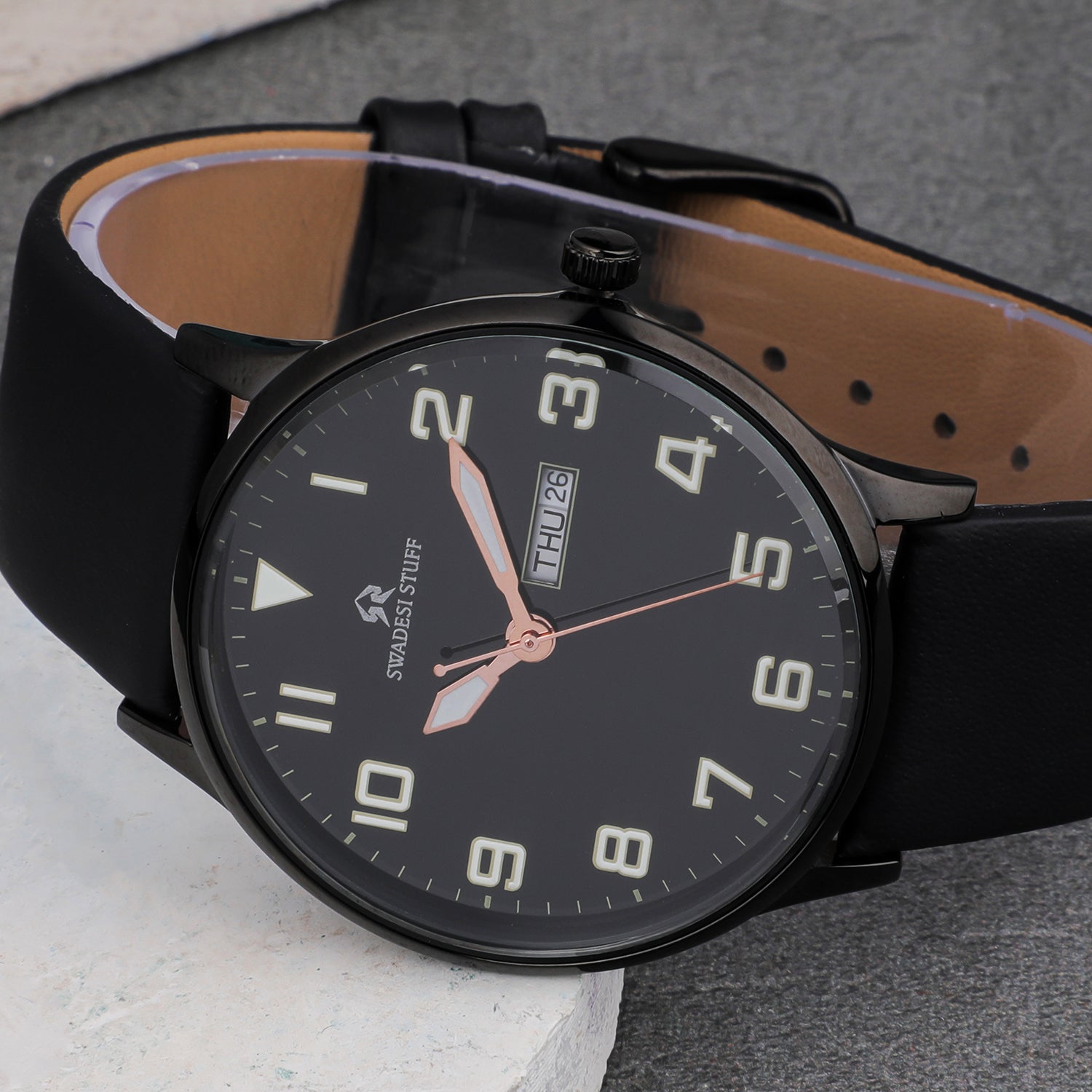 The timepiece is held by a pair of premium leather straps that are durable & super comfortable on the wrist