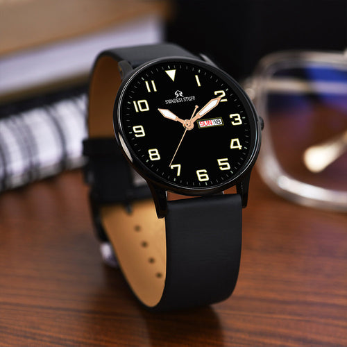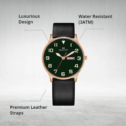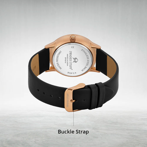 The timepiece is held by a pair of premium leather straps that are durable & super comfortable on the wrist