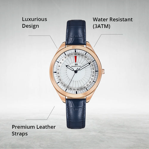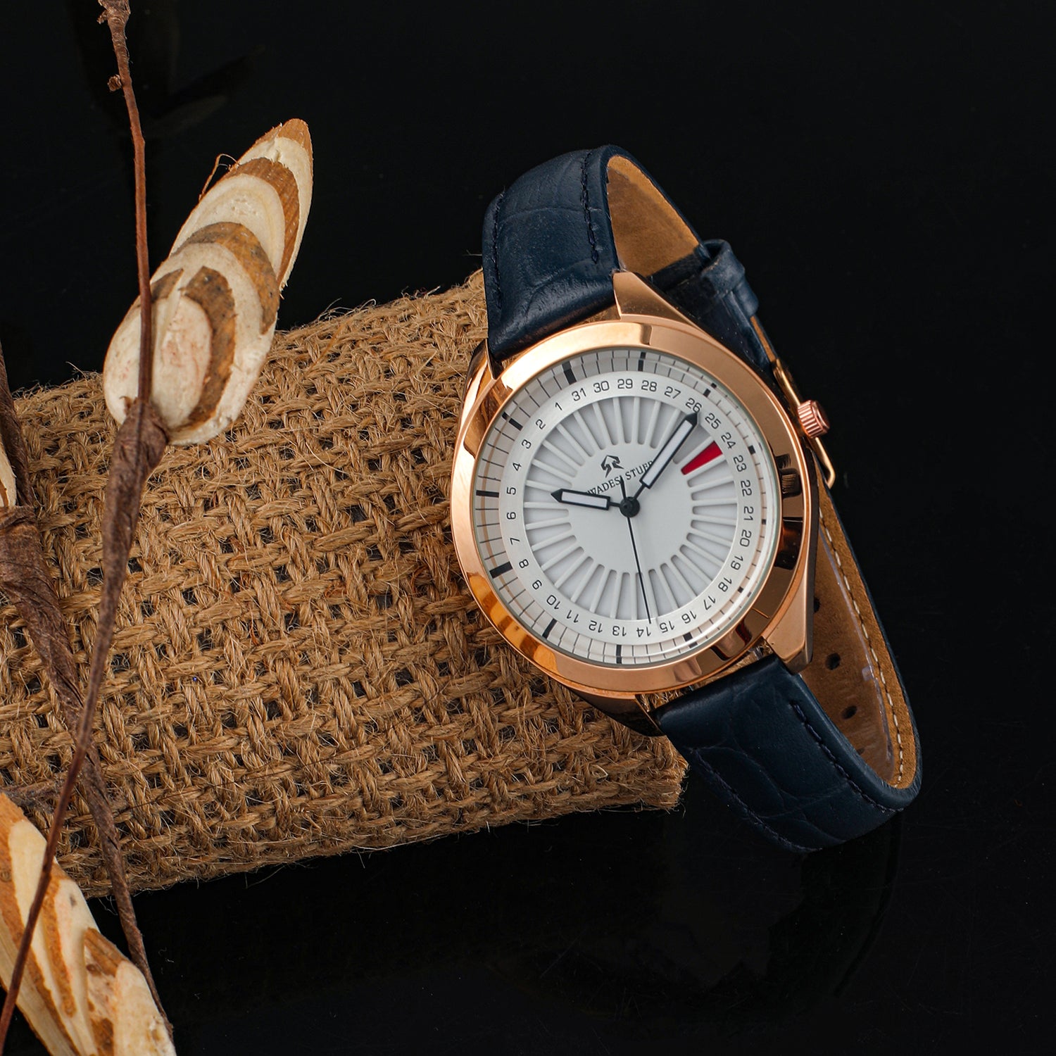 The timepiece is held by a pair of premium leather straps that are durable & super comfortable on the wrist