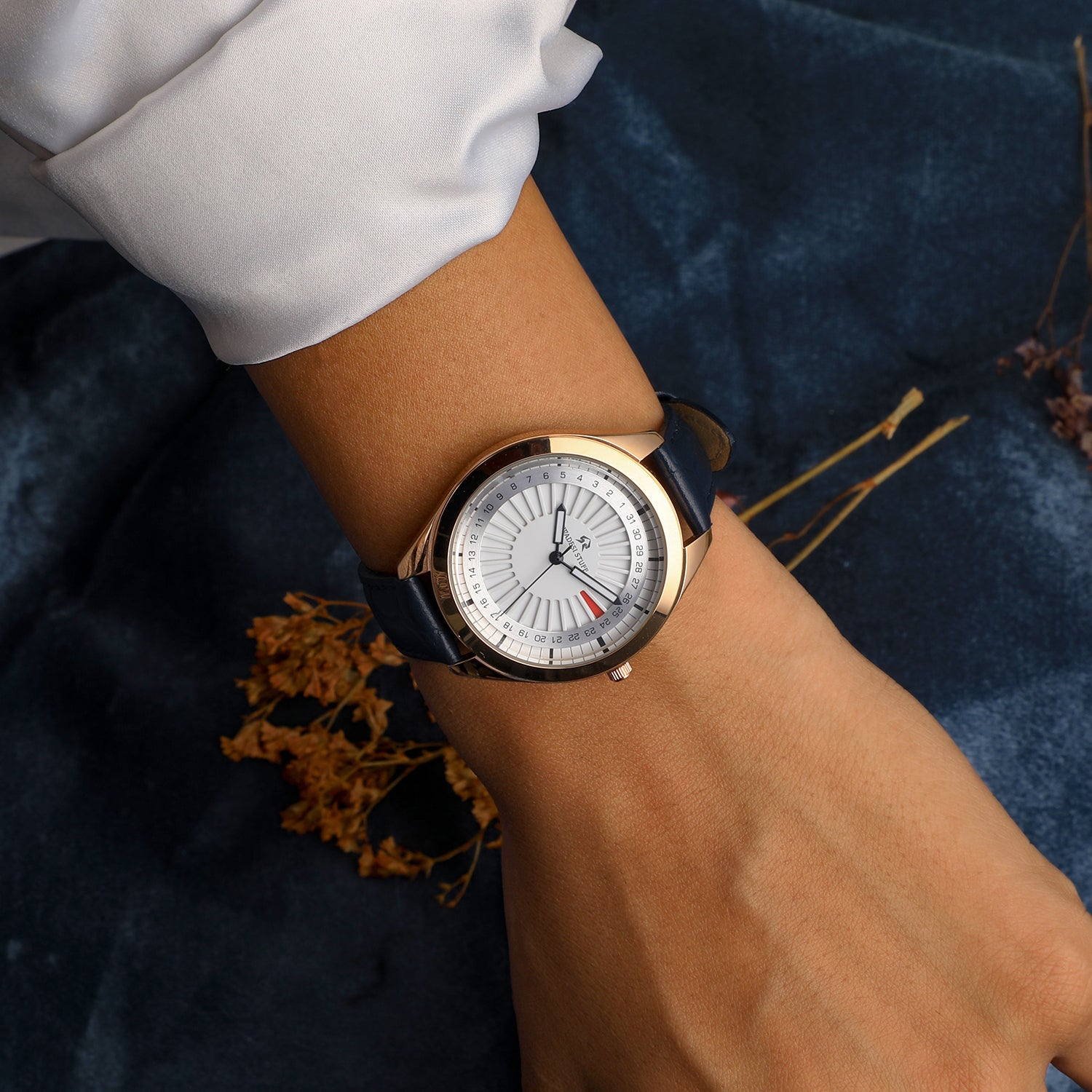 The Mariner is a master timepiece proudly conceptualised, designed & crafted in India. Held by premium leather straps, The Mariner is supported by a powerful Japanese machine. Inspired by the structure of a navigator’s compass, The Mariner resembles the spirit of discovery. Elegant on the wrist but bold enough to liaise the Swadesi sentiments