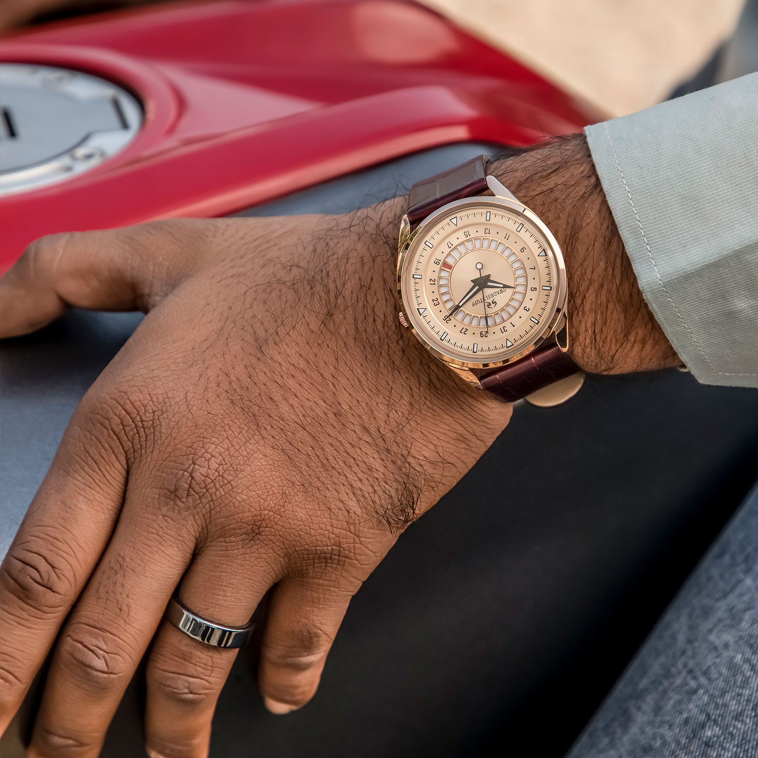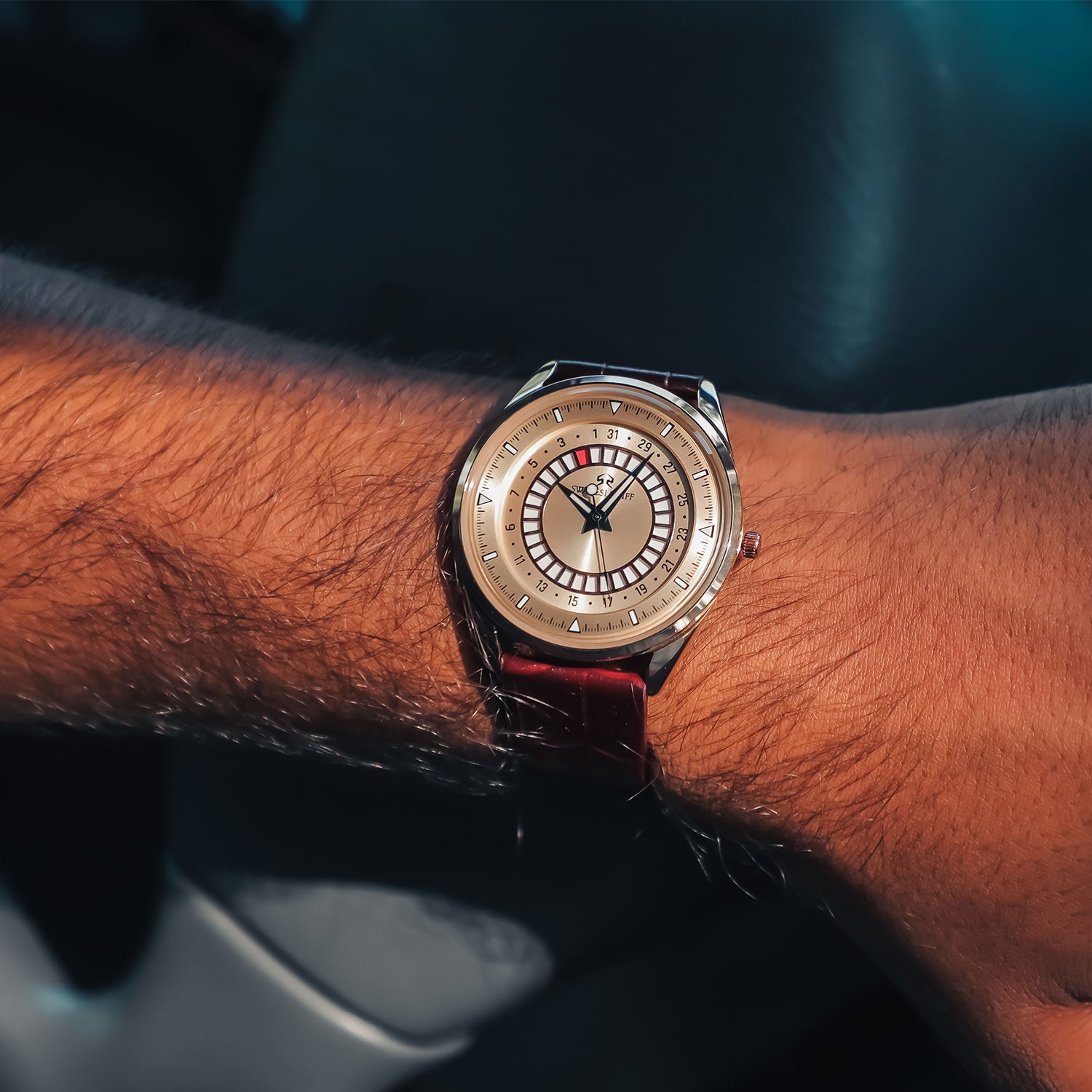 The Mariner II is a master timepiece proudly conceptualised, designed & crafted in India. Held by premium leather straps, The Mariner II is supported by a powerful Japanese machine. Inspired by the structure of a navigator’s compass, The Mariner II resembles the spirit of discovery. Elegant on the wrist but bold enough to liaise the Swadesi sentiments.