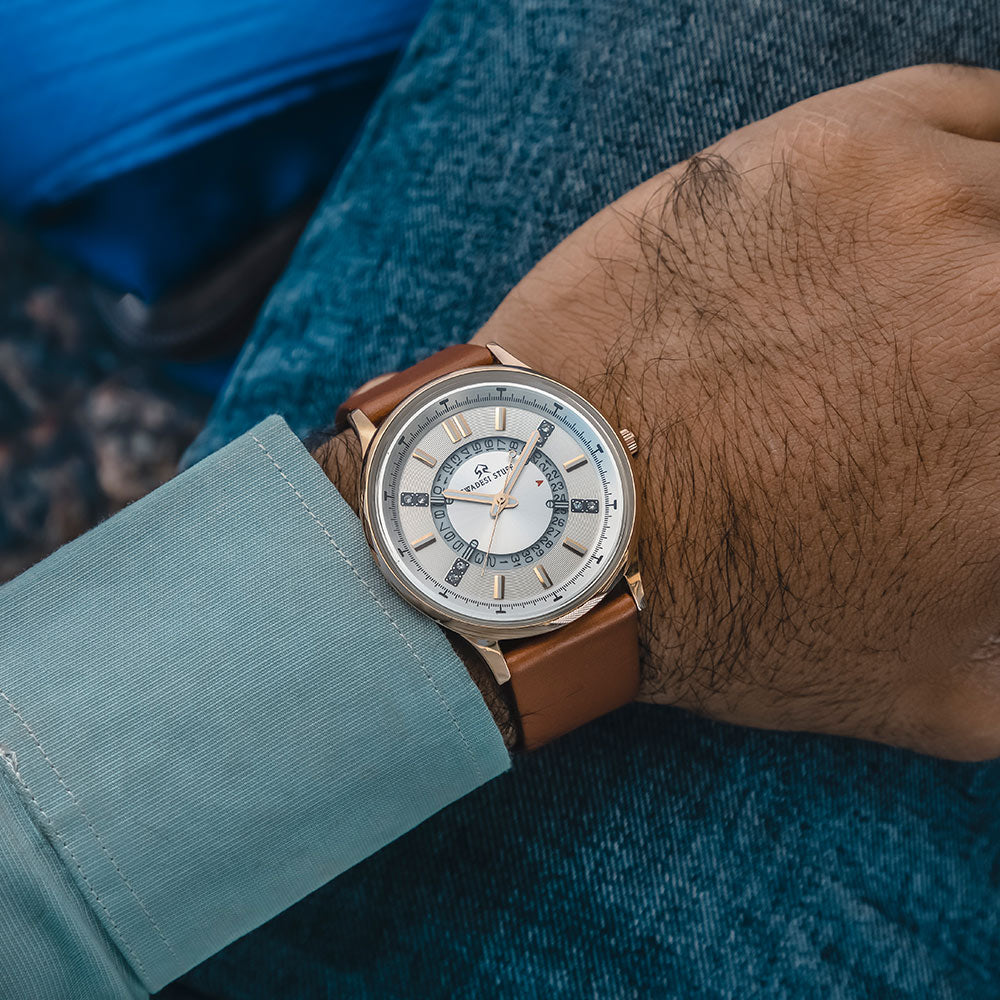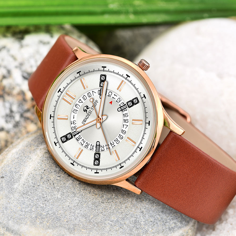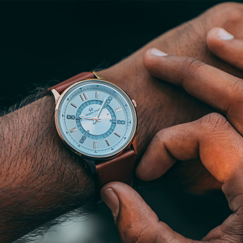 Designed conceptualized & crafted proudly in India, the Trailblazer is a unique blend of modern art & luxury. The luxurious timepiece is powered by a significant piece of Japanese movement machinery & is held by a pair of premium leather straps. The appealing design is bold enough to liaise the Swadesi sentiments while adding a tint of grace & luxury to your wrist.