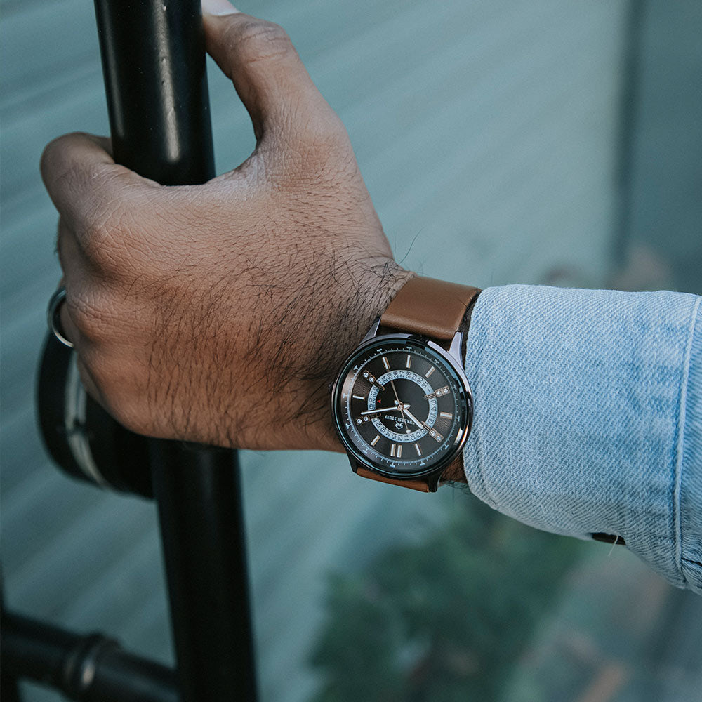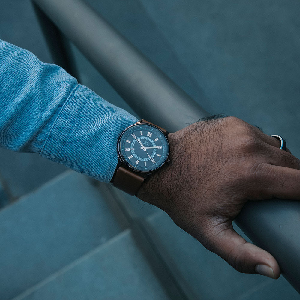 Designed conceptualized & crafted proudly in India, the Trailblazer is a unique blend of modern art & luxury. The luxurious timepiece is powered by a significant piece of Japanese movement machinery & is held by a pair of premium leather straps. The appealing design is bold enough to liaise the Swadesi sentiments while adding a tint of grace & luxury to your wrist.