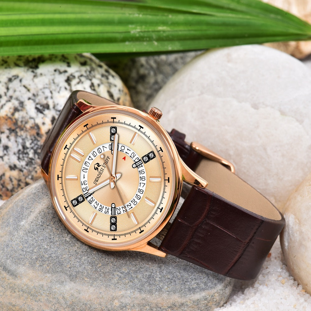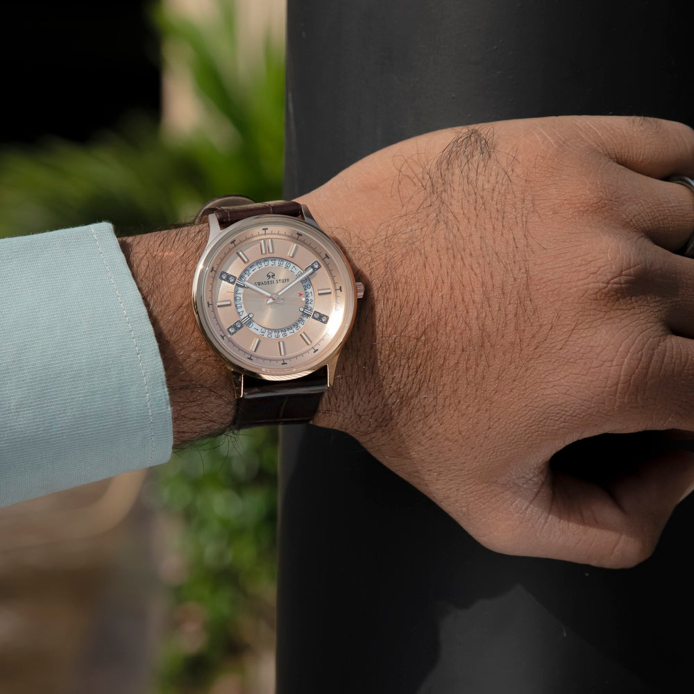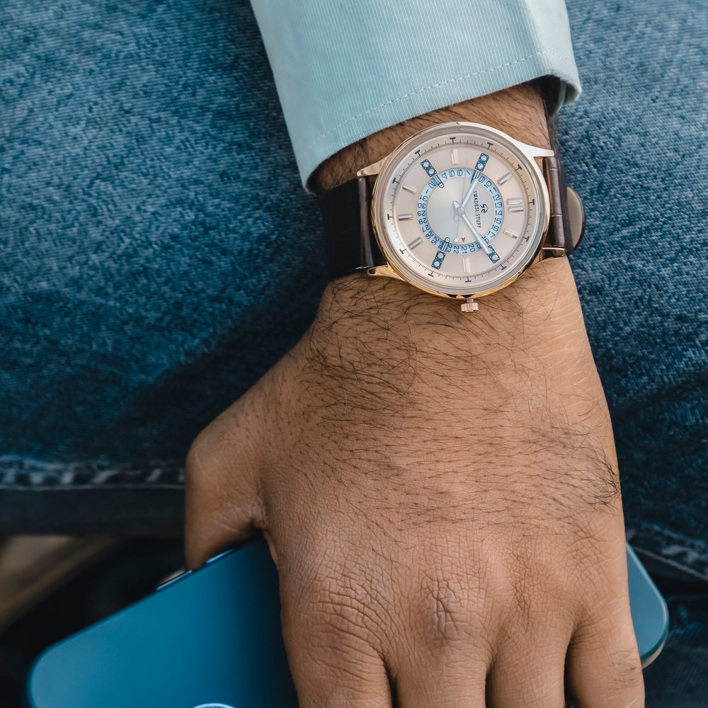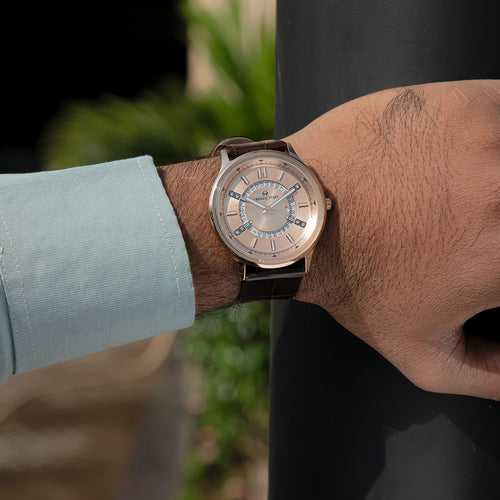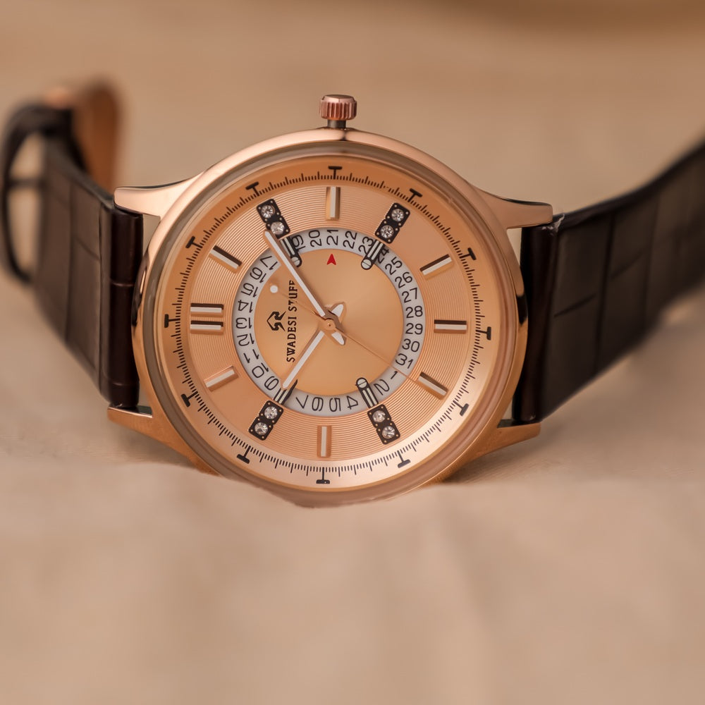 Designed conceptualized & crafted proudly in India, the Trailblazer is a unique blend of modern art & luxury. The luxurious timepiece is powered by a significant piece of Japanese movement machinery & is held by a pair of premium leather straps. The appealing design is bold enough to liaise the Swadesi sentiments while adding a tint of grace & luxury to your wrist.
