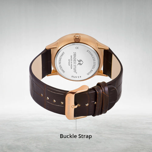 The timepiece is held by a pair of premium leather straps hand-studded with diamonds that are durable & super comfortable on the wrist