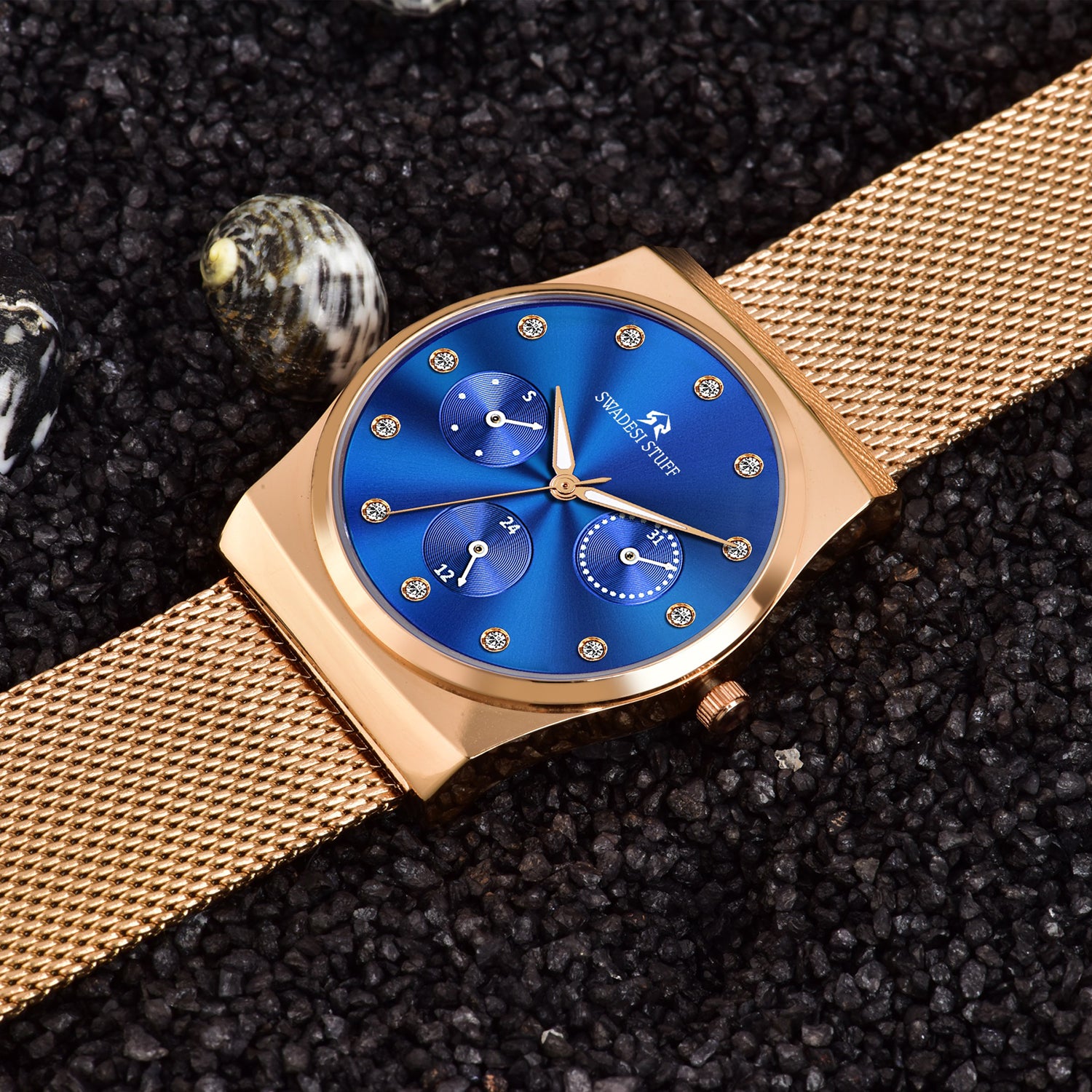 The timepiece is held by a pair of premium stainless steel straps that are durable & super comfortable on the wrist